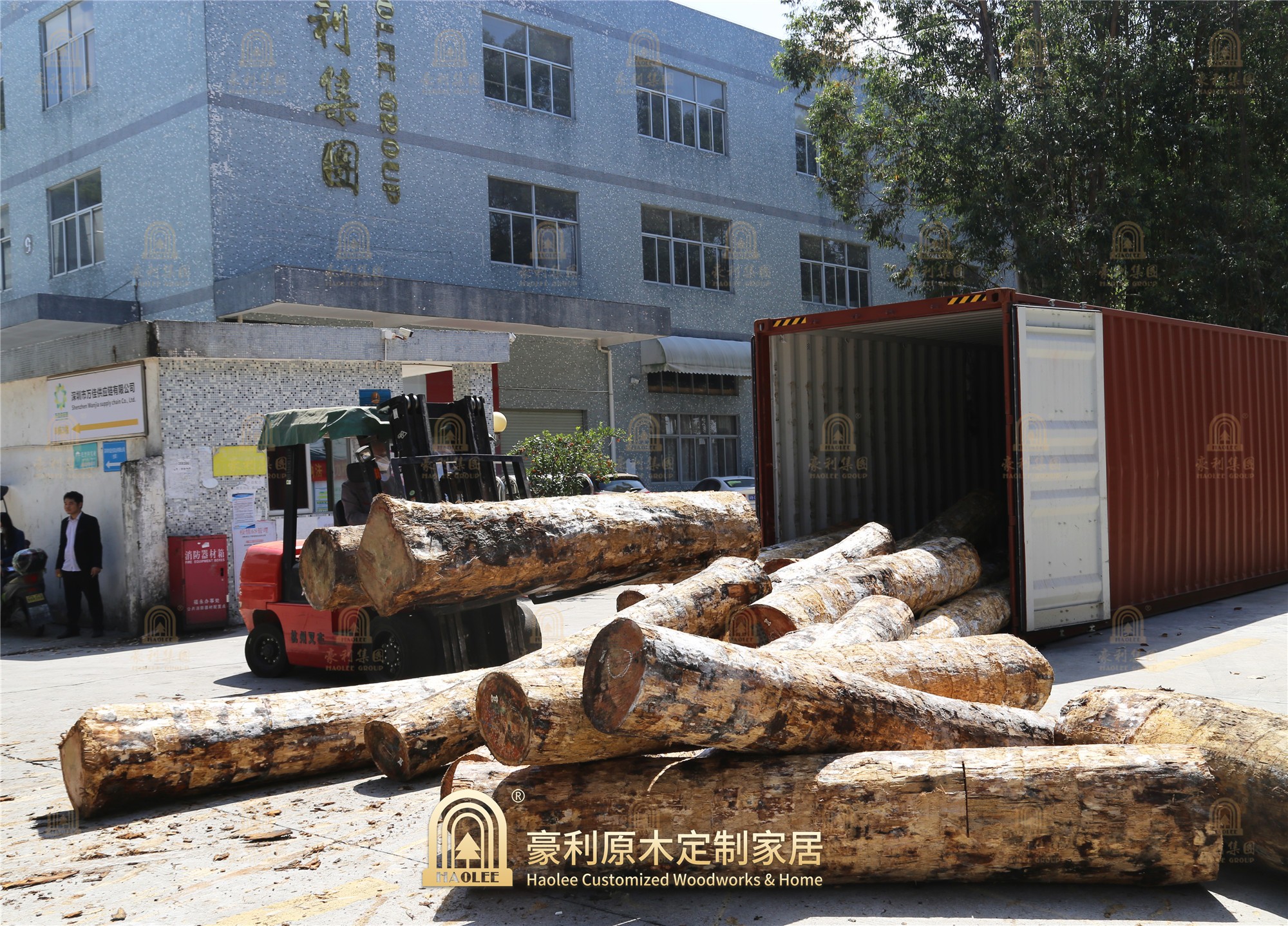 三月的深圳,暖意融融,豪利集团的生产正在如火如荼的进行中。为保证工厂的原材料供应储备,豪利集团开启大手笔囤木的序幕——订购的25柜原木木材已经到达海关。