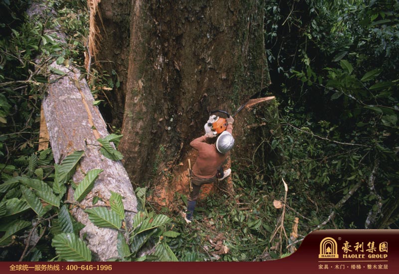 图05:他们手执油锯,锯倒一棵棵早已通过审批并标记好的参天大树。