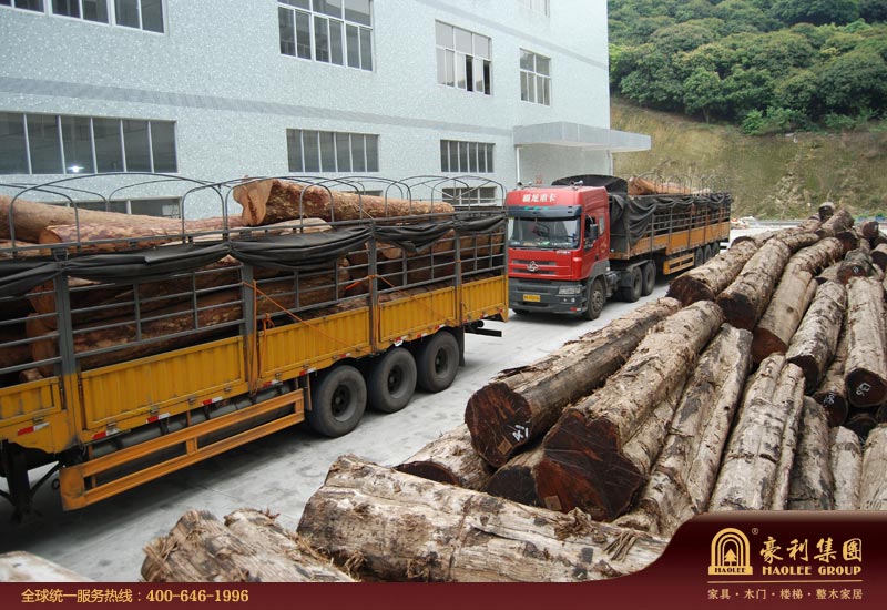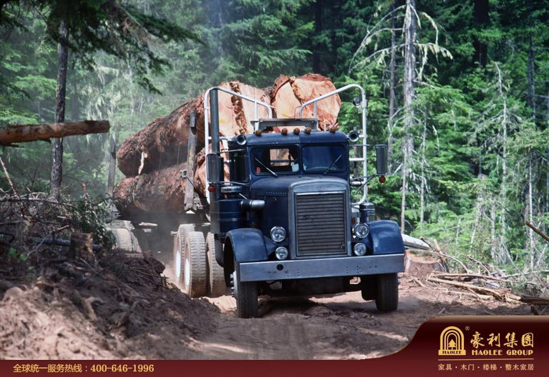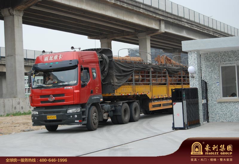 图13:我们以重型加长卡车到货运码头将原木直接转回生产基地。