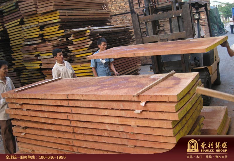 图16:在原木板材的切面上,我们还能看到从原始森林里面带来的饱满水分。