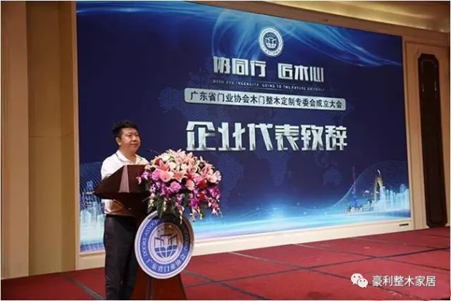 豪利集团作为嘉宾单位参加了此次大会。作为广东省门业协会常务副会长,豪利集团董事长杜延金先生代表集团参加会议,并作发言。杜总说“木门行业的发展趋势就是整木家装,随着高档装饰装修的普及,整木家居发展成为中国的消费潮流。目前,整木家居行业市场潜力巨大,但行业在产品标准的制定、人才、市场等方面仍存在一些弊端,需要行业同仁一起携手前行,共促行业稳健发展。”