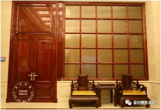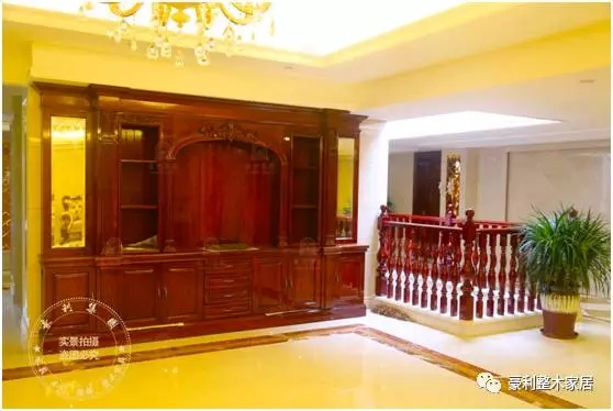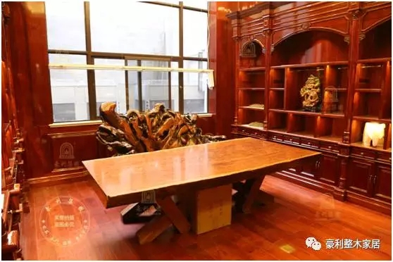 巴西花梨木大板做的书桌和巴花根雕做的座椅,颇有王者之气。原木展示柜里成列着各式玲珑剔透的玉器和珍奇古董,玉石和硬木,均是中国传统物质文化的四大文化符号,自古以来受到地位尊贵的人士追捧,至今,在家里使用红木家具、陈列木雕和美石,仍然不言而喻地主人的文化追求和生活品味。