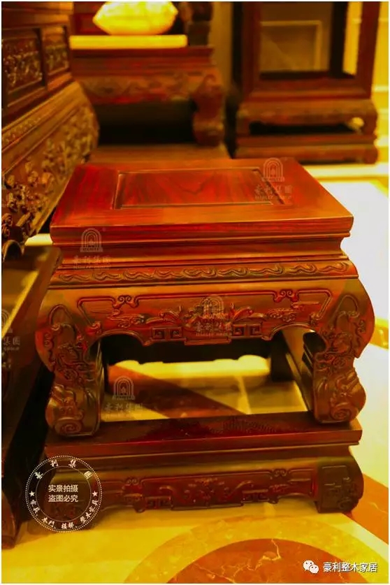 古典酸枝木圆椅,形态轻盈、线条流畅、造型精致。而紫檀木作沙发茶几,更是有着端庄的造型和沉稳蕴藉的气韵。红木家具的魅力,不仅在于其原料之稀有,更在于其形制、神韵,如古典名画里走出的窈窕美人,婉丽温雅,娴静柔和,这一种“天然去雕饰”的自然之美和持久弥新的气质,足以珍藏传世。