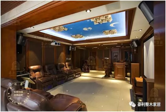 吧台、酒窖和家庭影院连为一体,这三个典型的体现美式生活方式的空间,采用的装修也是经典美式。通透大气的空间格局、舒适的真皮座椅、粗犷简约的木作雕花,都给人以毫无羁绊的自在感。
