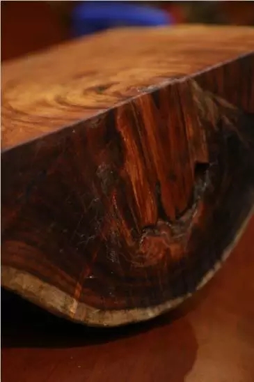 他本来如往常一样在公司处理事务,准备接待客户。却被告知,有个老朋友给公司送了一块难得的好木头,让他过去看看。他来到茶室,只见一块半人高的、泛着红褐光泽、纹理绚丽的木头屹立在茶几边,走进细看,木头质地细腻、手感温润,交错的纹理时有鬼脸,又似乎透着金丝……在木材行业做了二十多年的他,迅速在心里下了判断:这是块上好的海南黄花梨木料!