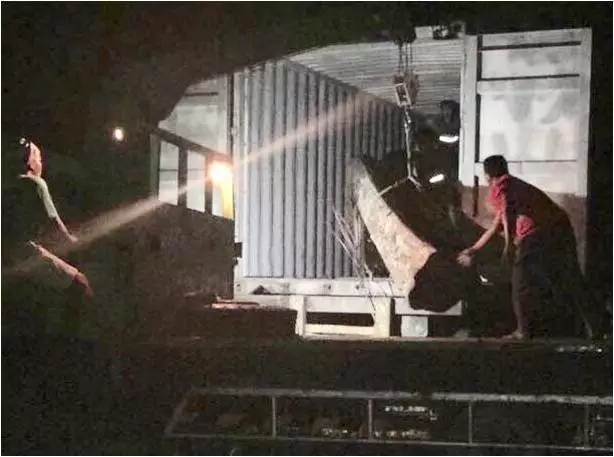 大叶黄花梨正装箱运往深圳……