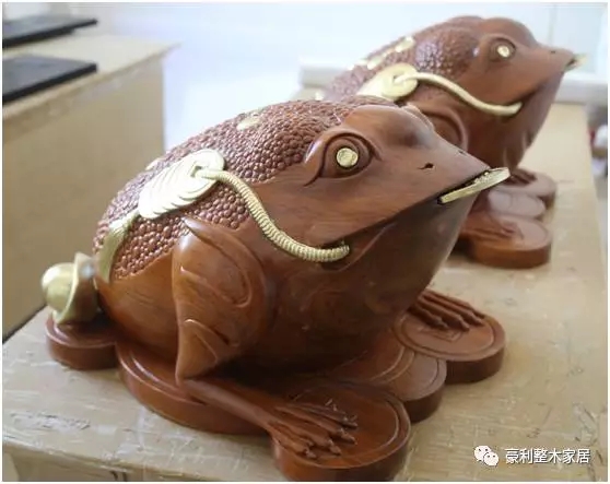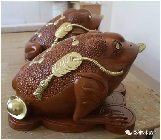 因为金蟾有着这么多丰富、美好的寓意。不管是人们公司开业、搬新家乔迁之喜,还是有朋友新官上任,或者朋友小孩考上学校,甚至需要送礼给上司,一对木雕大金蟾都成了大家锦上添花的不二之选!