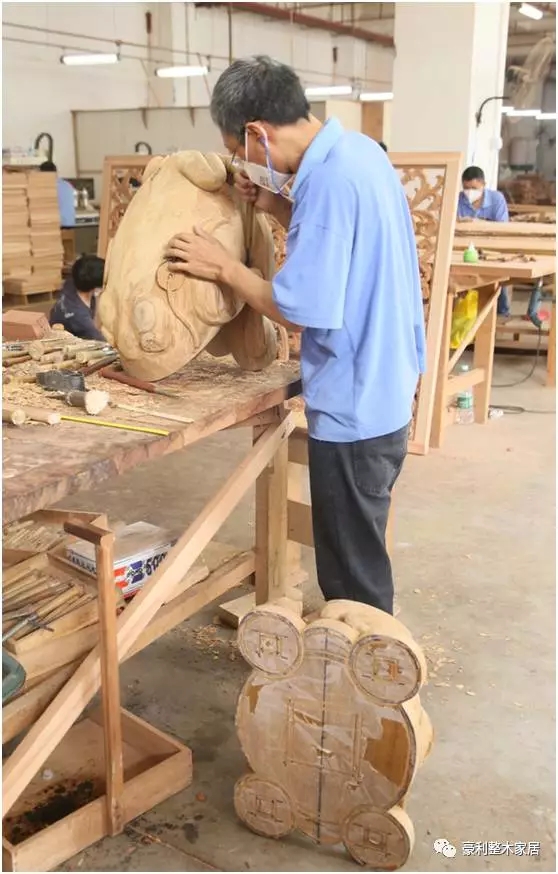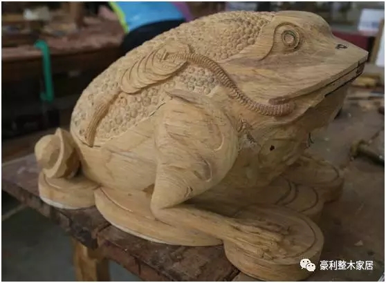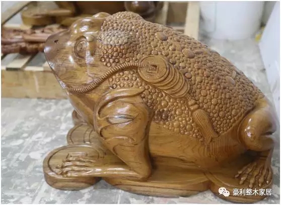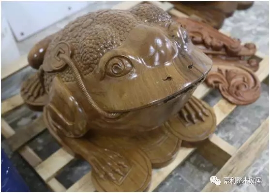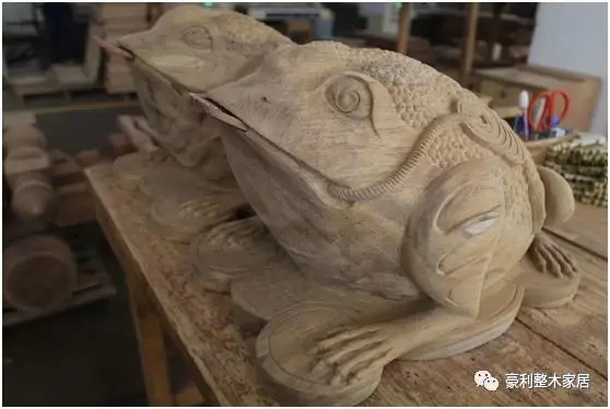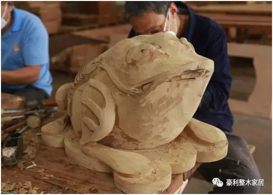 说了这么多,让小编压抑住嘚瑟的心情,很严肃地带大家来看看豪利的木雕金蟾的“诞生”过程!