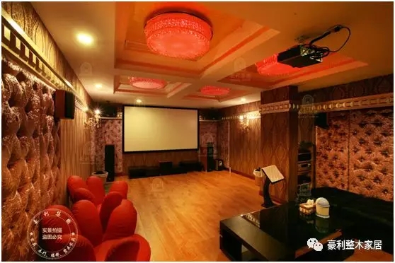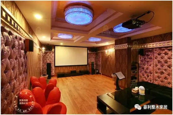独立的家庭电影K歌院,偏欧式的现代装修,用稠质软包隔绝噪音,显得华丽而用心。原木与音乐的共振是非常美妙的,在柔和的变光灯下,无忧无虑地享受家人朋友欢聚的美好时光。