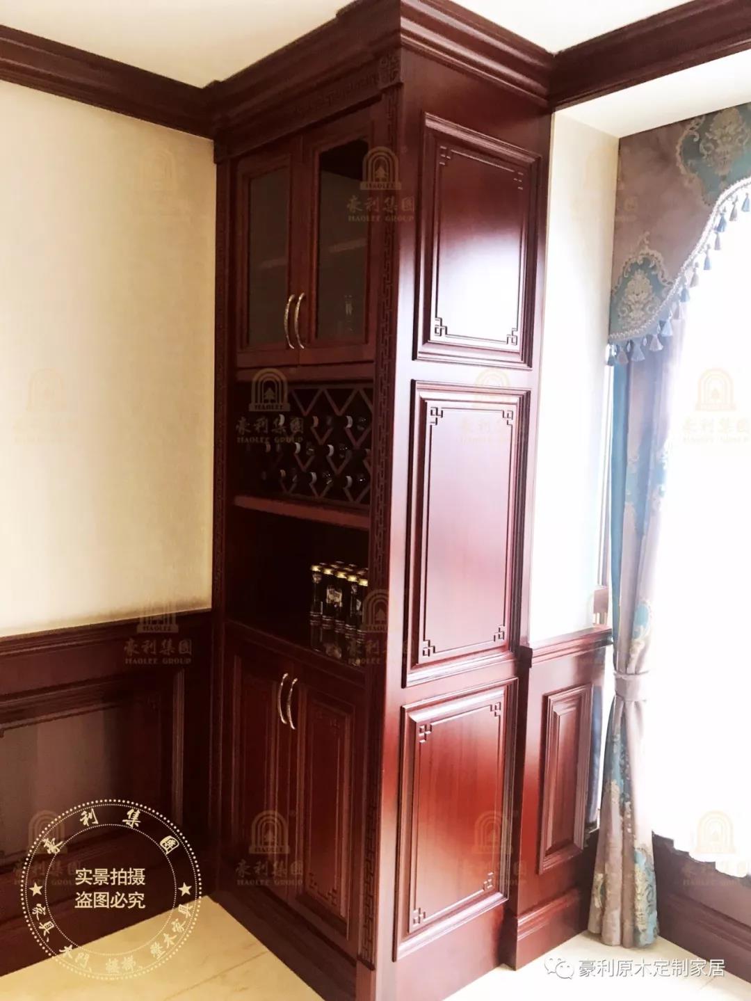 餐桌边的酒柜和餐边柜,尽显设计用心,为主人宴请宾客,尽地主之谊着想,设计诸多酒格,使宾客既可品尝红酒的浓郁芬芳,也可小酌精心准备的佳酿。倘使在肃冷的冬季,一杯一盏,温暖内心,话说中式情怀!