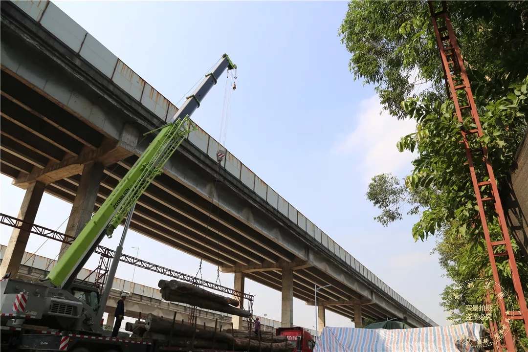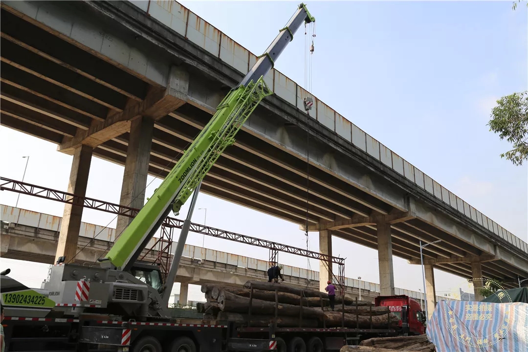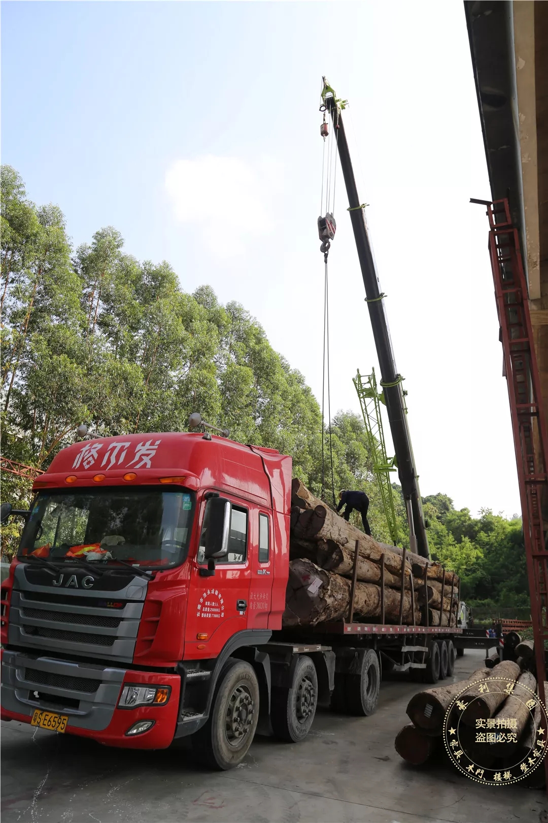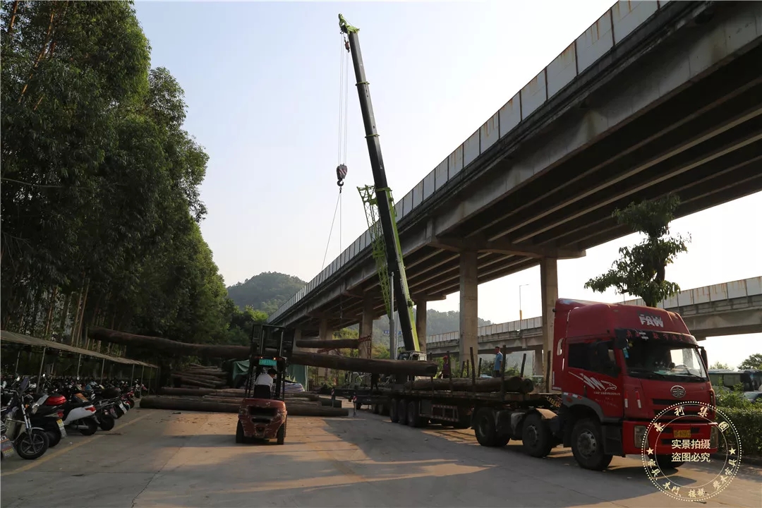 由于木材通长且材质硬重,工作人员不得不调用大型起重机卸货。现场的作业人员仔细穿好绳索,并小心将木材卸下、码放整齐,其认真态度和专业水平小编不得不点赞啦。