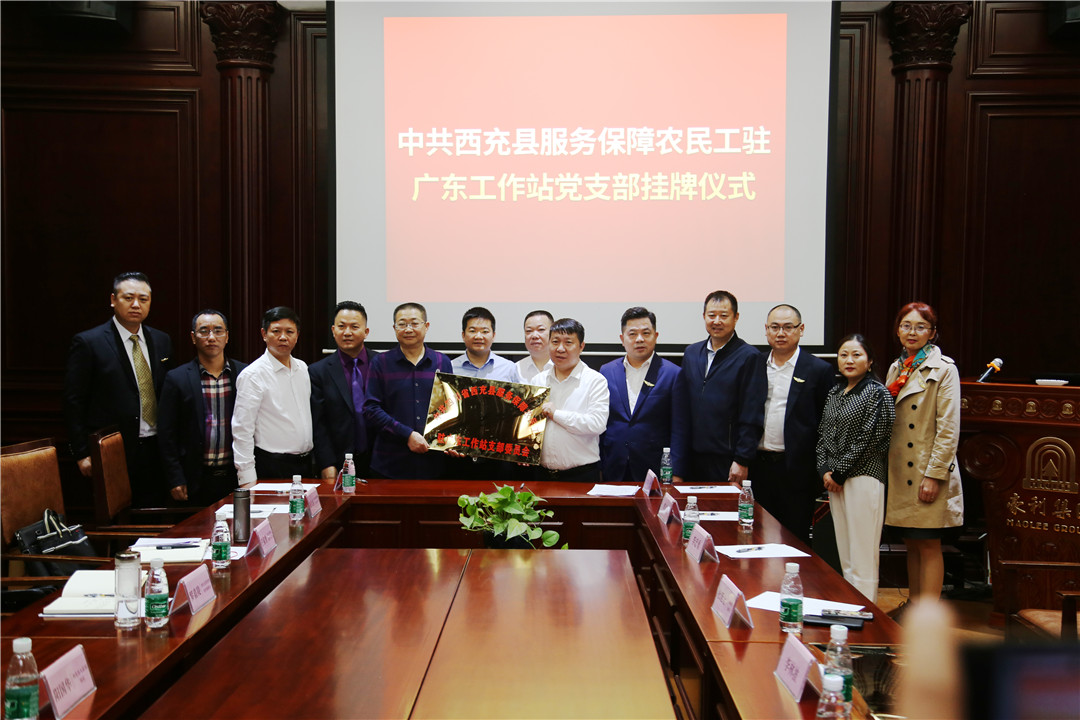 会议接近尾声,西充县人社局副局长杜红霖与董事长杜延金就西充县服务保障农民工驻广东工作站进行签约,工作站正式挂牌;此外,中共西充县服务保障农民工驻广东工作站党支部也正式挂牌成立。这集中体现了贯彻落实党中央大政方针和省委市委的决策部署,开启了西充县农民工服务保障工作的新纪元!