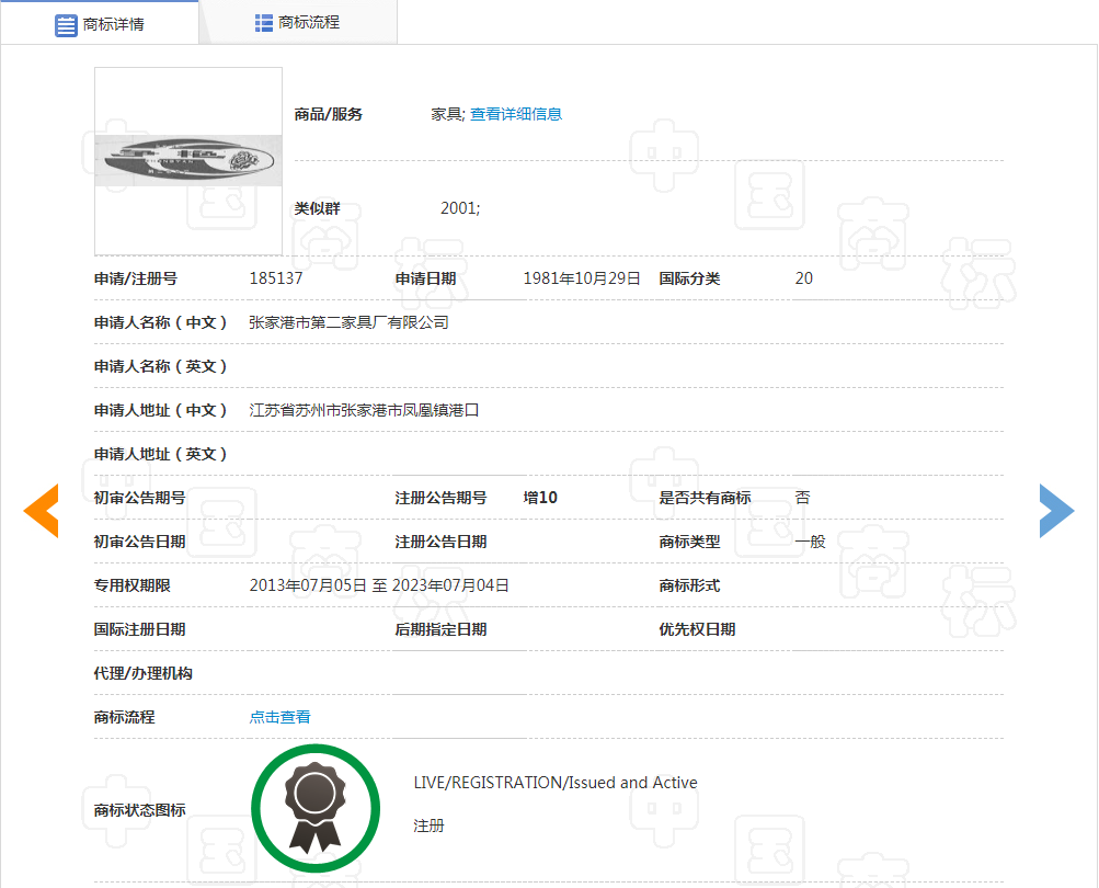 是国内第二个拥有品牌商标的家具厂家。