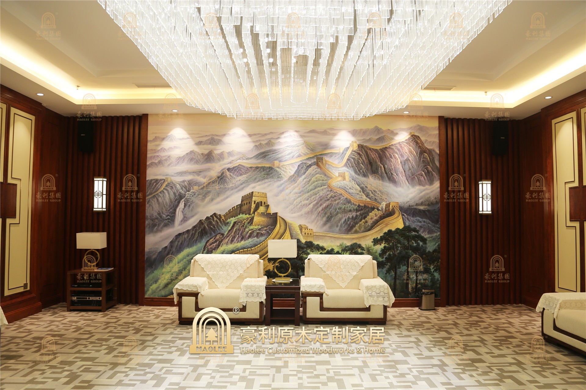 本案为某酿酒集团总部原木装修。设计师采用名贵木材,通过温润的色调,古朴的造型,融入多种中国传统元素,让木文化、酒文化、字画文化等多种文化相遇碰撞,绽放有厚重感的中式美学,营造出一个具有东方意趣的独特空间。